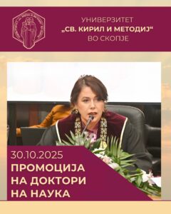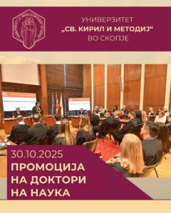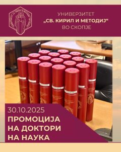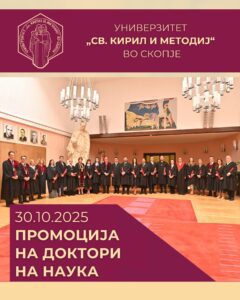 ✨На 30.10.2025 година беше одржана промоција на доктори на науки од областа на медицинските и здравствените науки, општествените науки, природно-математичките науки и од подрачјето на инженерството и технологијата.