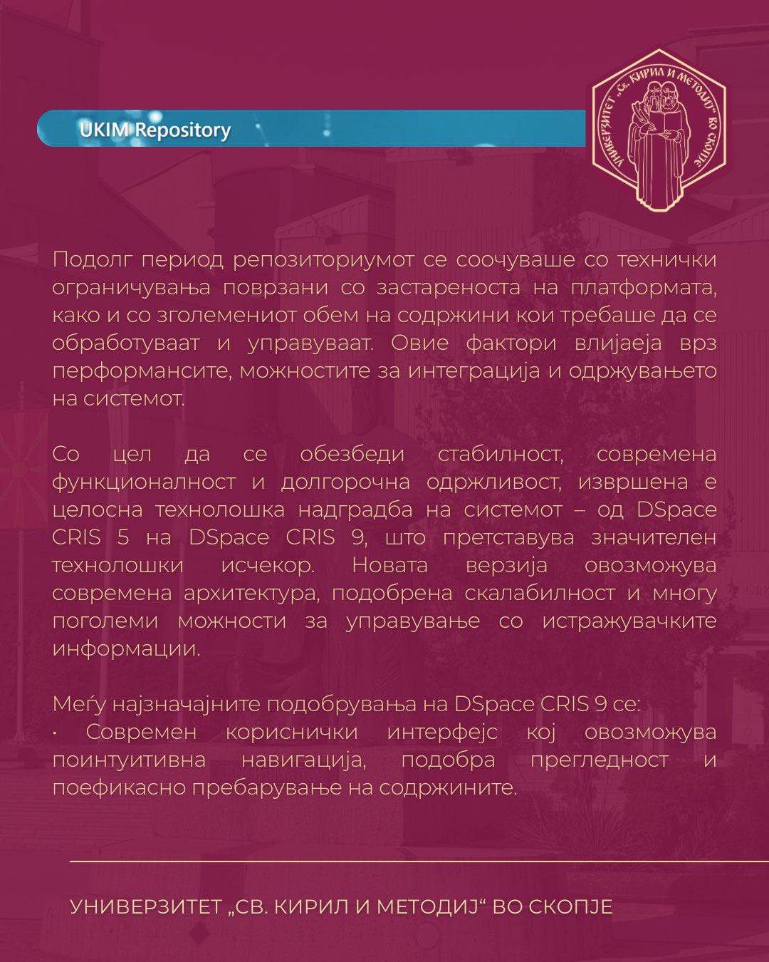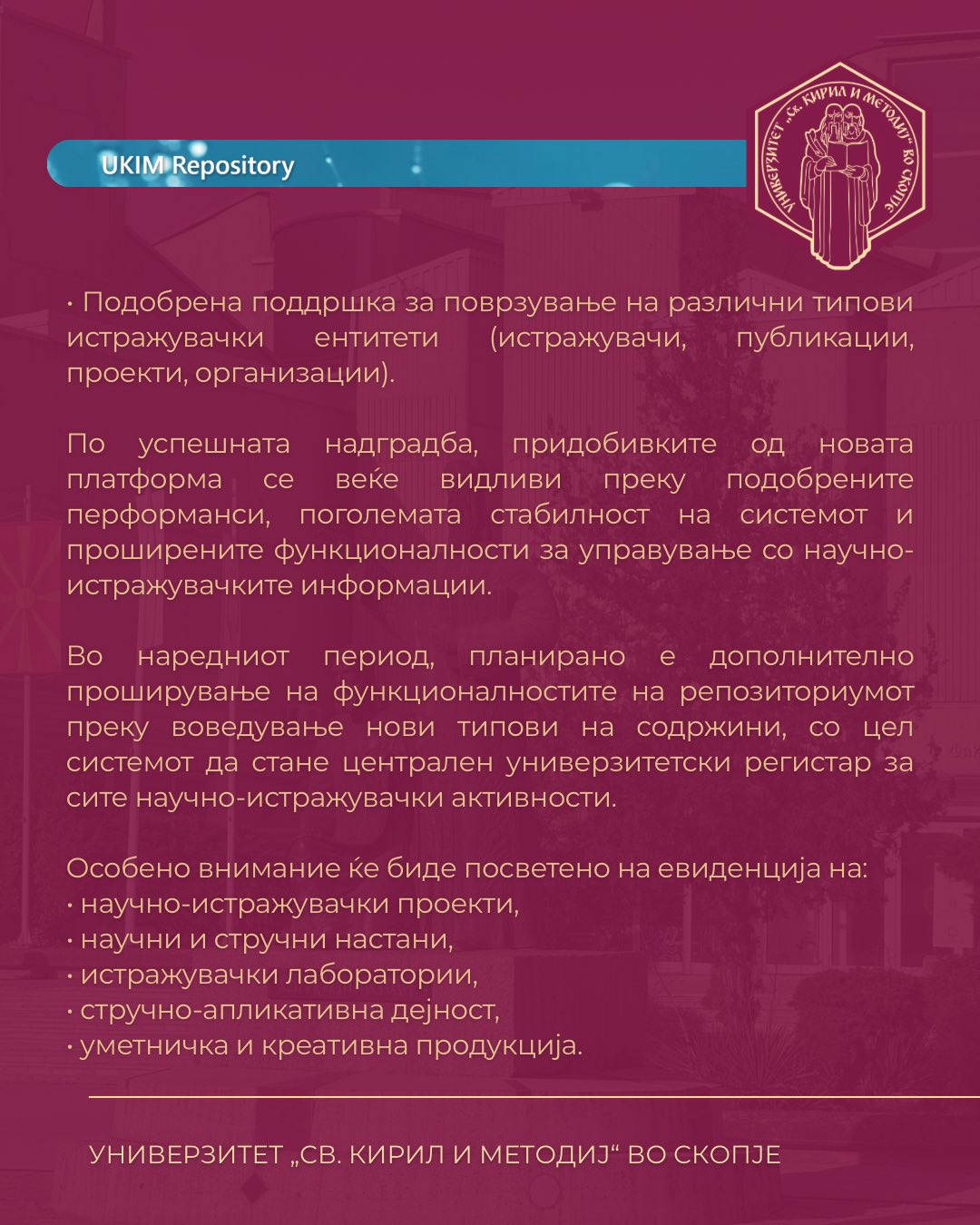 Репозиториум на научни трудови на Универзитет „Св. Кирил и Методиј“ во Скопје