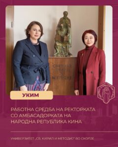 ✨На 19 февруари 2026 година, ректорката на Универзитет „Св. Кирил и Методиј“ проф. д-р Биљана Ангелова оствари средба со амбасадорката на Народна Република Кина во Република Северна Македонија, Н.Е. Џијанг Сјаојан.